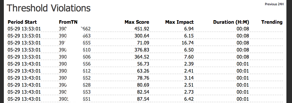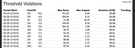 Record of Threshold Violations - This recorded some actual abuse that was going on while the system is still under development.